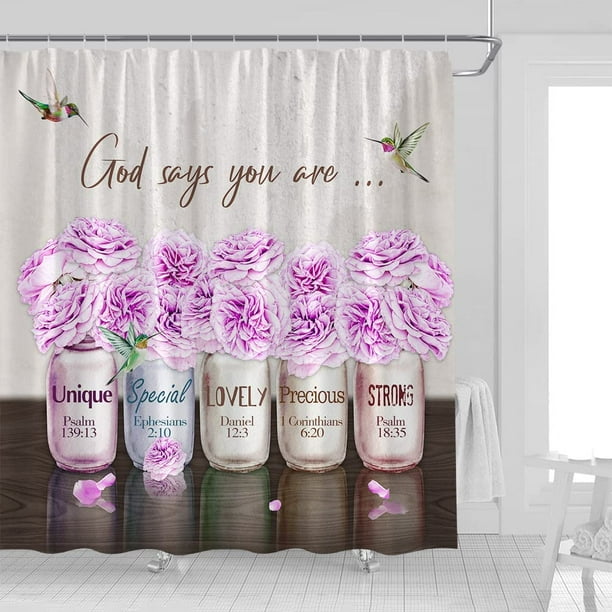 Floral Inspirational Quotes Shower Curtain Motivational Word Hummingbird Purple Rose Flower Vase Retro Rustic Farmhouse Home Fabric Bath Curtains For Bathroom Decor With Hooks 181 X 70 Walmart Com