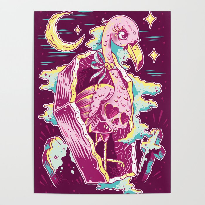 Horror Flamingo In Coffin With Moon Halloween Cute Traditional Flash Tattoo Poster By Ella Mobbs Society6